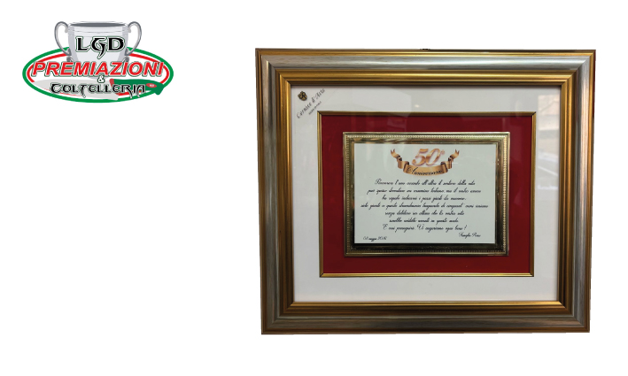 La targa e' in alluminio sublimatico e puo' essere di tre tipi : Argento, Oro o Bianco.