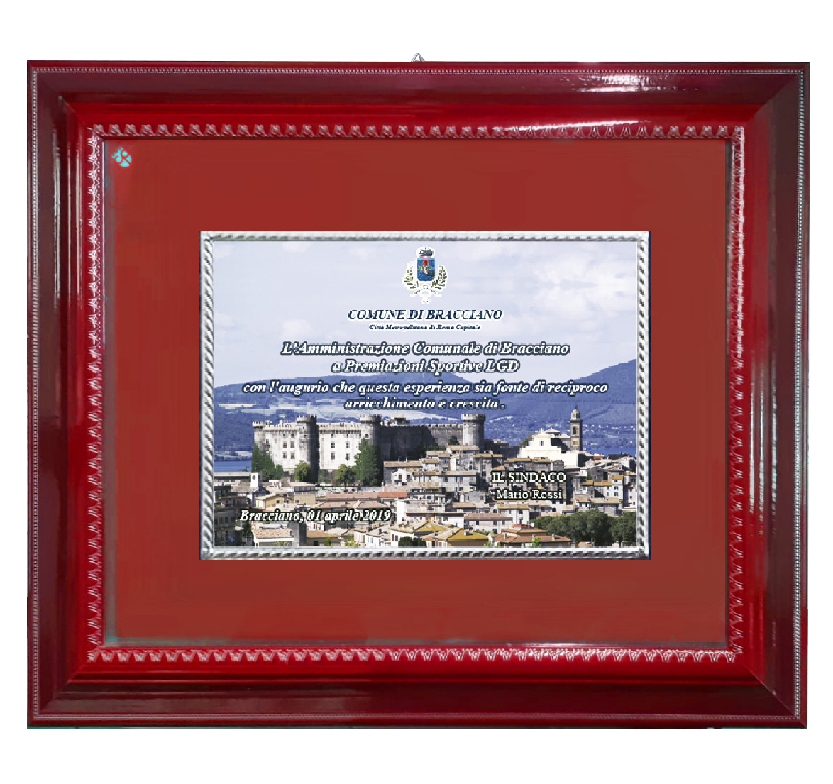La targa e' in alluminio sublimatico e puo' essere di tre tipi : Argento, Oro o Bianco.
