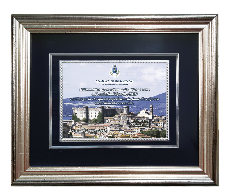 La targa e' in alluminio sublimatico e puo' essere di tre tipi : Argento, Oro o Bianco.